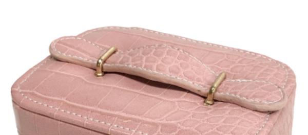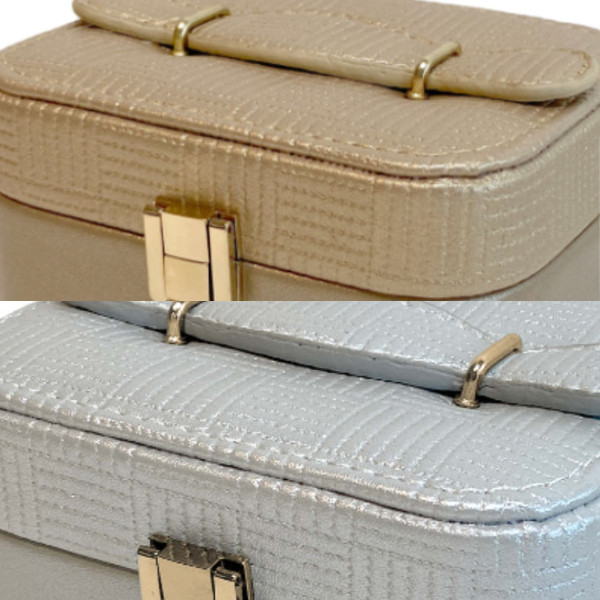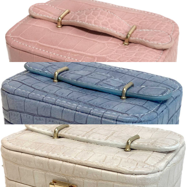 ピンク・ブルーグレー・アイボリーはクロコ調の型押しです。上品な雰囲気で、持っているだけで気分が上がるようなデザインです。クロコ調のジュエリーボックスは、カラーによってデザインが異なっています。