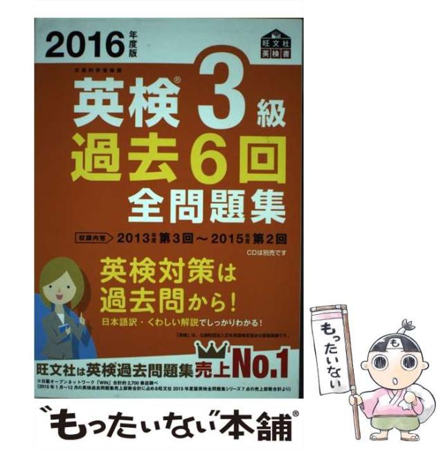 商品名:【中古】 英検3級過去6回全問題集 文部科学省後援 2016年度版 (旺文社英検書) / 旺文社 / 旺文社 [単行本]【メール便送料無料】