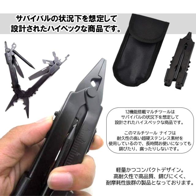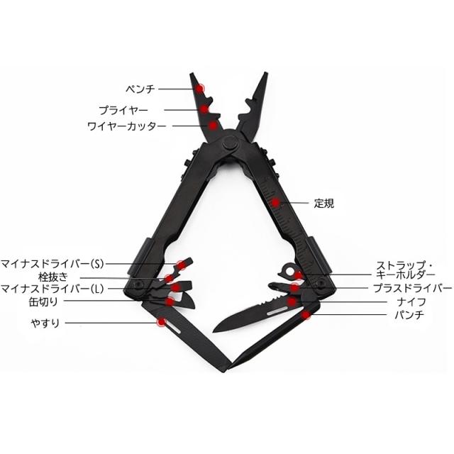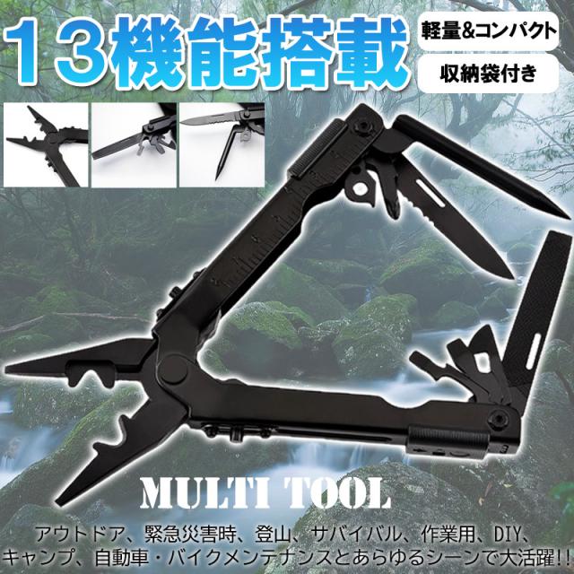 オリジナルブラック 13機能搭載 マルチツール 多機能 ポケット ナイフ スタイル サバイバル ツール アウトドア 釣り 車載 工具 送料無料