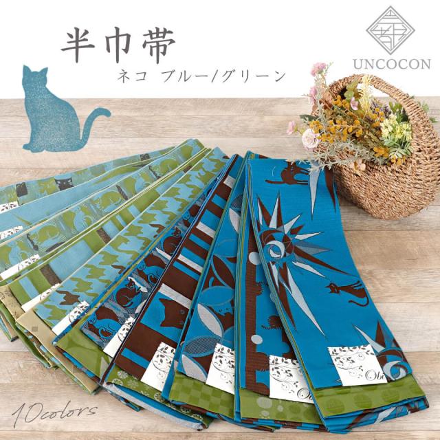 夏のお祭りの浴衣帯やカジュアルな着物に合う涼しげな半幅帯です。