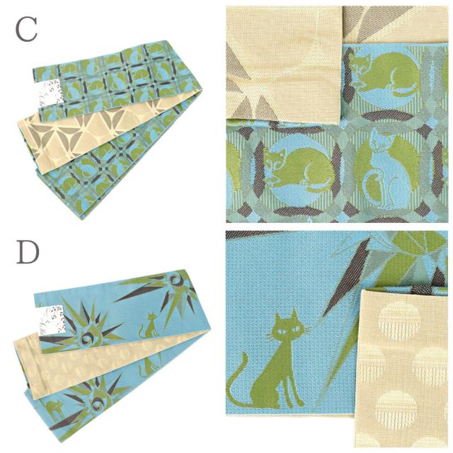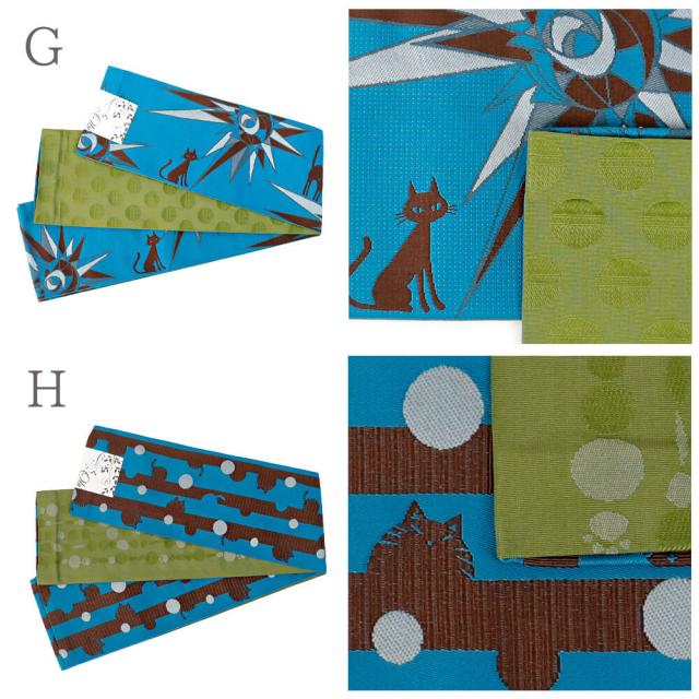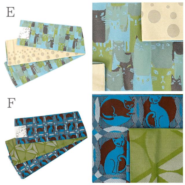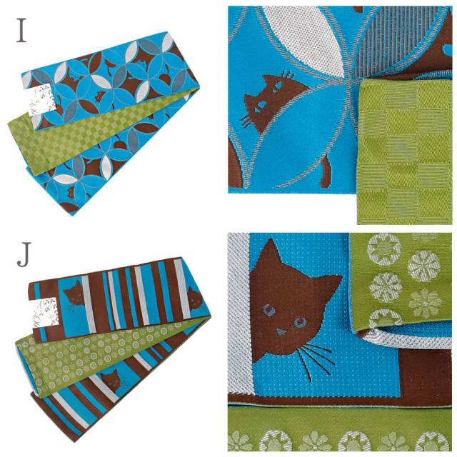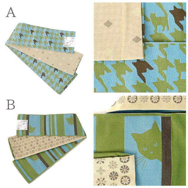 半巾帯 浴衣帯 半幅帯 ゆかた帯 細帯 小袋帯 日本製 個性派 女性浴衣 リバーシブル 大正ロマン お洒落着 パープル 猫 ねこ