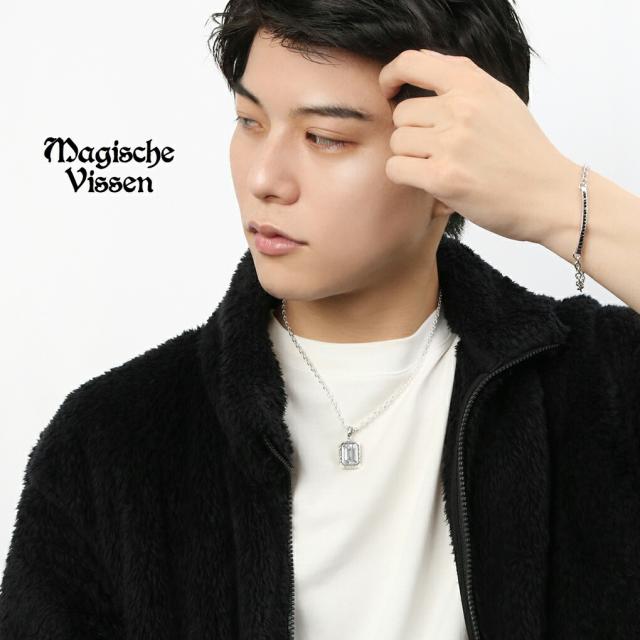 マジェスフィッセン 選べる スクエア ジルコニア シルバー ネックレス ペンダントトップ メンズネックレス ブラックジルコニア メンズ シルバー925