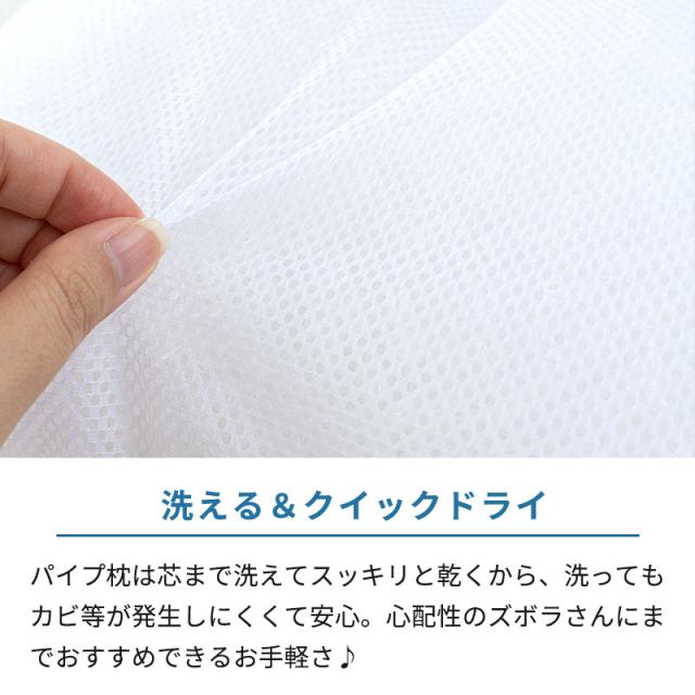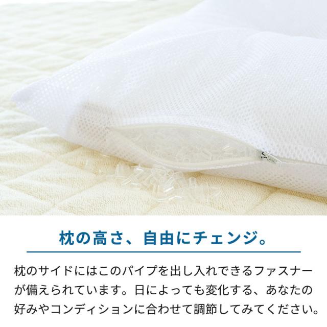 ・ソフトなやわらかめパイプのまくら。 ・枕の高さ、自由にチェンジ。 ・洗える&クイックドライ ・寝姿勢安定、中央くぼみ形状。 | |