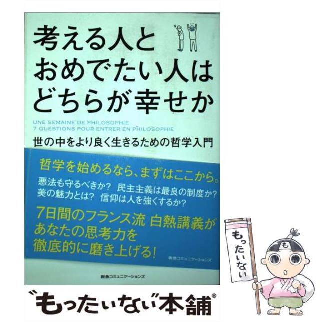 商品名:【中古】 考える人とおめでたい人はどちらが幸せか 世の中をより良く生きるための哲学入門 / シャルル・ペパン、 永田千奈 / CCCメディ [単行本(ソフトカバー)]【メール便送料無料】