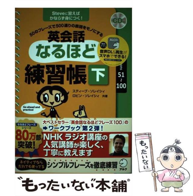 商品名:【中古】 英会話なるほど練習帳 50のフレーズで500通りの表現をモノにする 下 Steveに習えばかならず身につく! / スティーブ・ソレイシィ ロビン・ソレイシ / [単行本]【メール便送料無料】