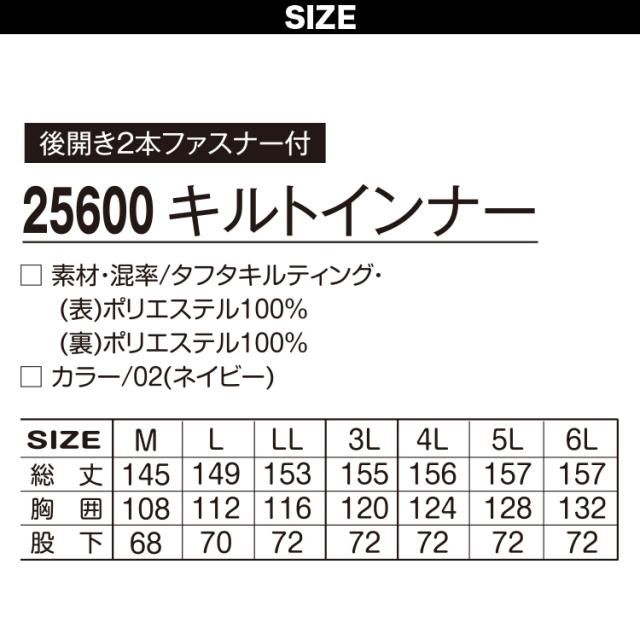 アタックベース キルトインナー 25600 4L-5L 大きいサイズ 作業服 作業着 防寒着 続服 オーバーオール 秋冬 保温 暖かい メンズ ATACKBASE