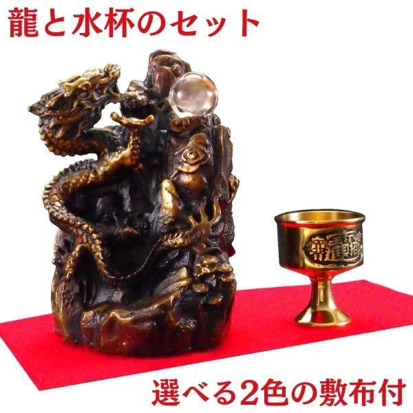 送料無料 龍の置物 龍 置物 龍グッズ 金龍上山 ( 宝珠付 ) と水杯のセット 銅製 龍 水杯 セット 五本爪 置物 風水 玄関 置物 風水 福袋 2026年福袋