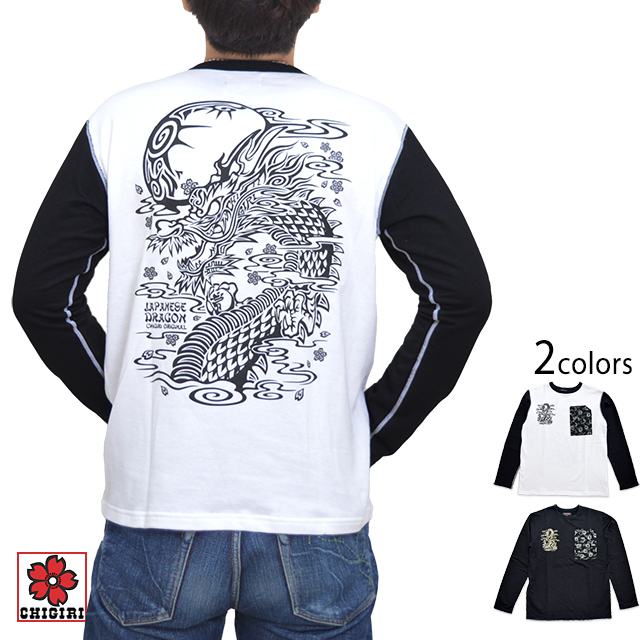 トライバル龍胸ポケット付き袖切替ロングTシャツ CHIGIRI CHL47-751 ちぎり チギリ 和柄 和風 長袖Tシャツ ロンT