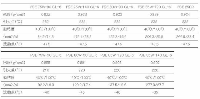 | GL-4 (マルチパーパスタイプ) | ハイポイドギヤー及びきわめて過酷な条件下のギヤーに用いる。高速低トルク、低速高トルクに耐える | ディファレンシャルギヤー、トランスミッション及びステアリングギヤーに用いる |