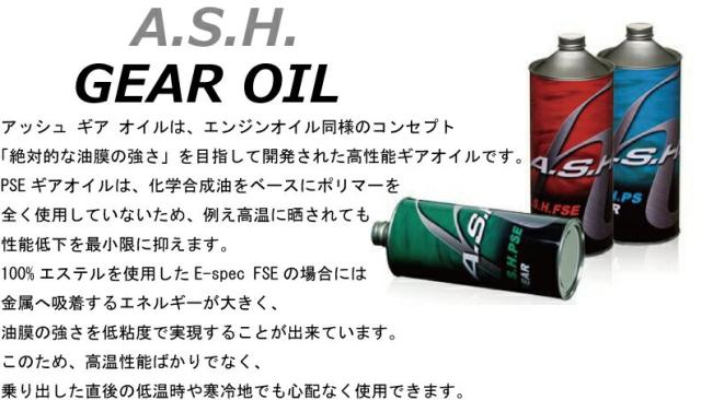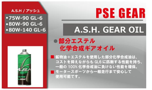 ASHアッシュ ギアオイル PSE GEAR 75W-90(75W90)GL6 1Lボトル 日本発の潤滑油ブランドA.S.H.