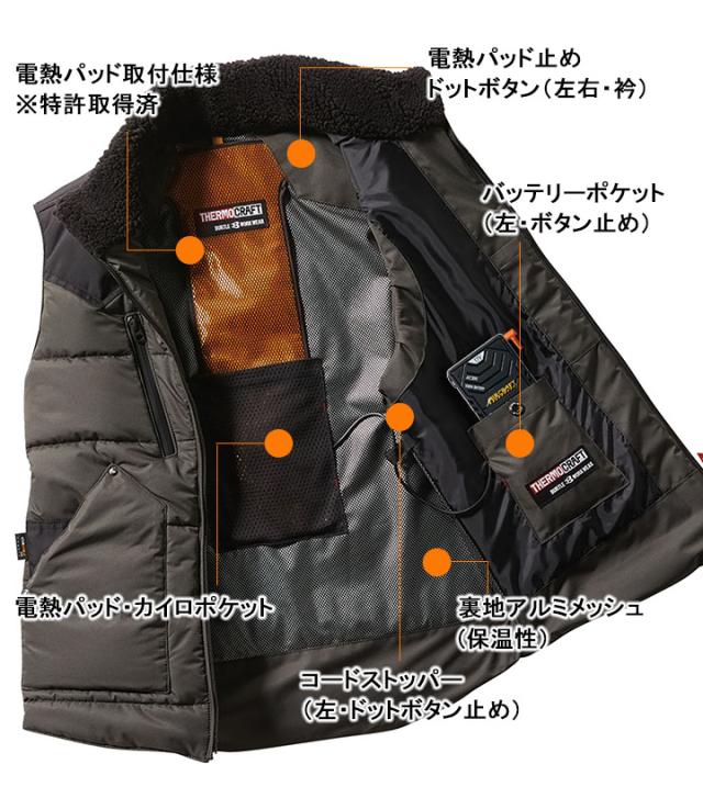 バートル 防寒ジャケット 長袖 保温 5020 サーモクラフト ヒートベスト 撥水 防風 耐水圧 男女兼用 メンズ レディース 秋冬 防寒着 防寒服 作業着 作業服 ブルゾン BURTLE