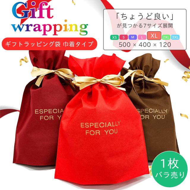 ギフトラッピング 袋 3カラー XL 1枚 バラ売り プレゼント ギフト リボン 贈り物 お祝い 誕生日 記念日 クリスマス 父の日 母の日 かわいい おしゃれ GIFT ラッピング メッセージカード 巾着袋 不織布 簡易 包装
