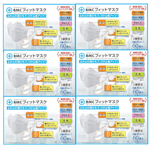不織布 マスク BMC フィットマスク レギュラーサイズ 白色 60枚入×6 【6個セット】送料無料