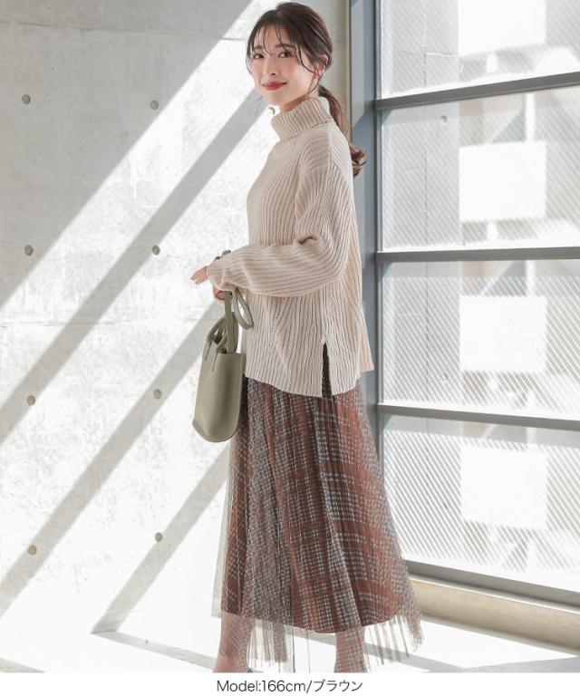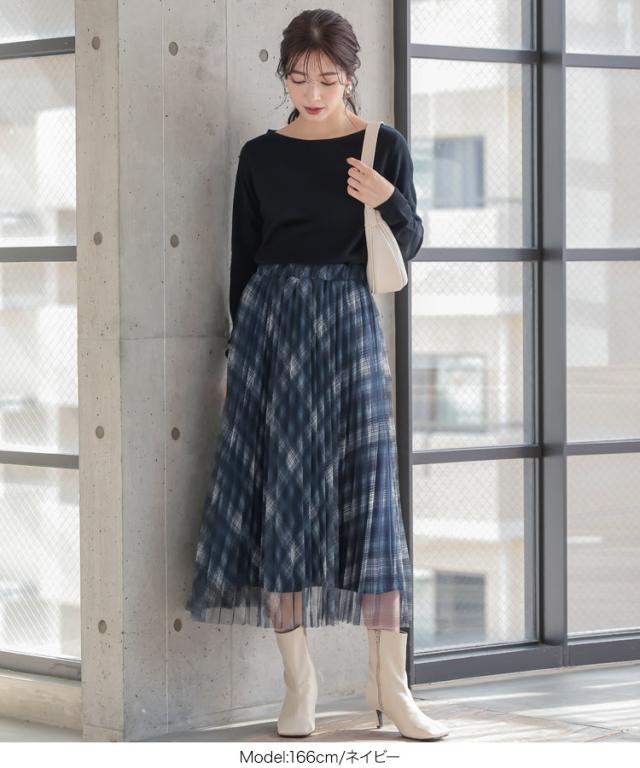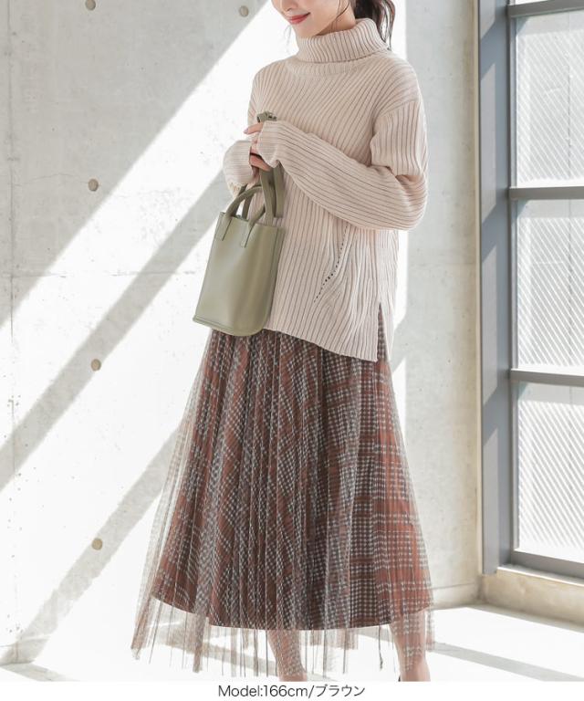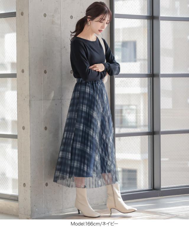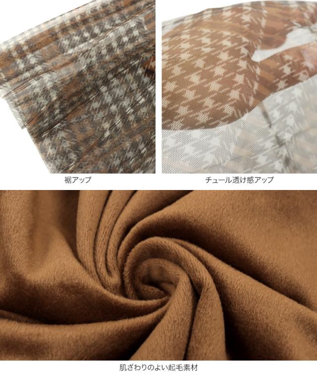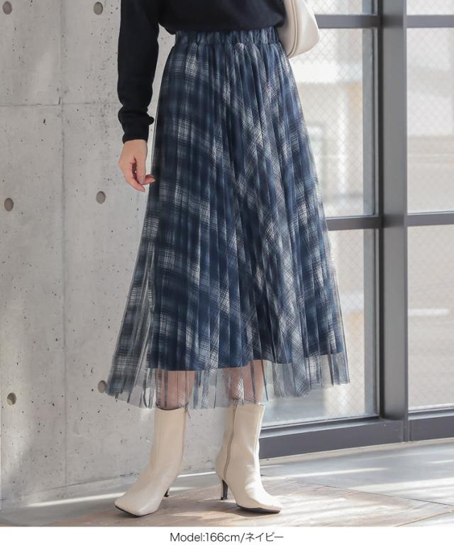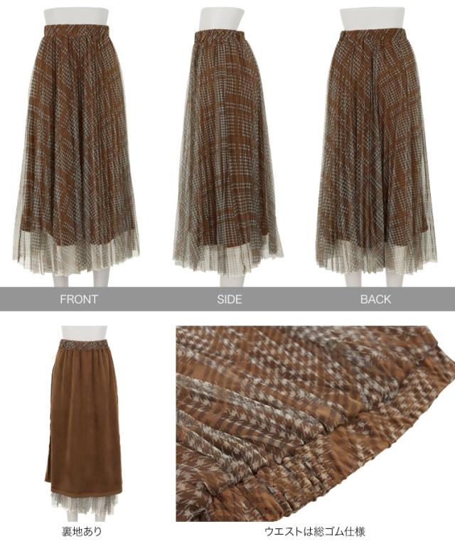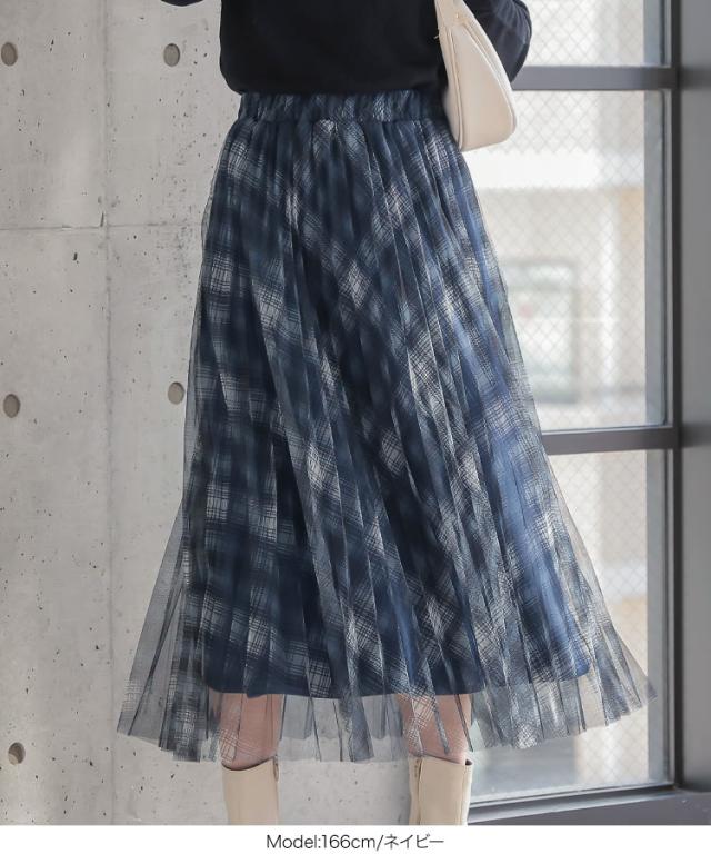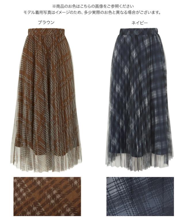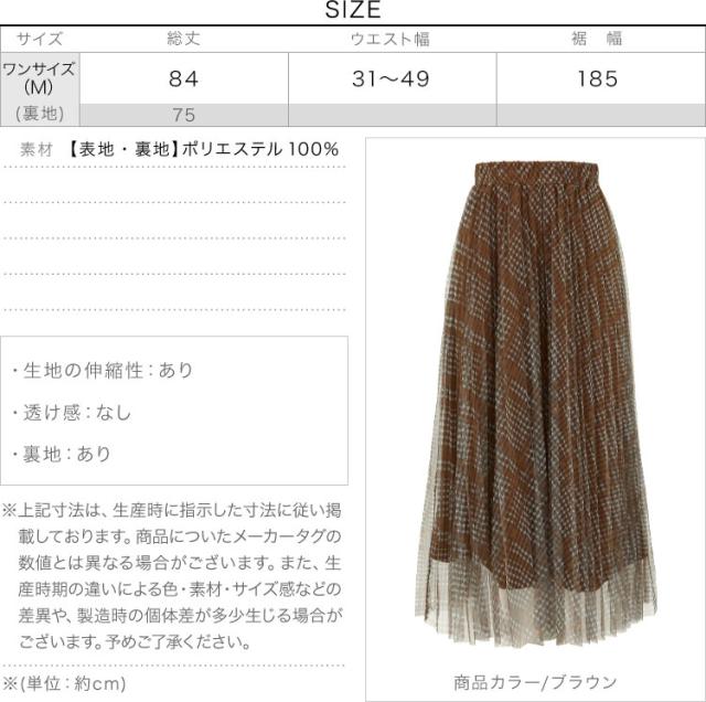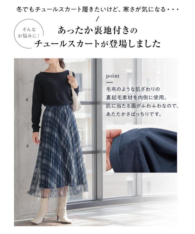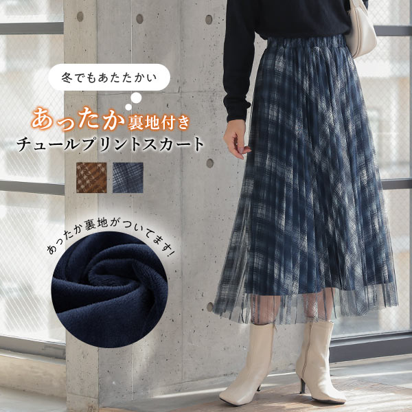 あったか裏地付きチュールプリントスカート M3499 入荷済 レディース ボトムス スカート ウエストゴム 裏起毛 暖かい