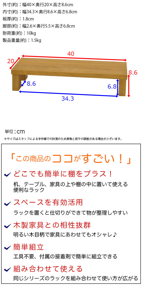 外寸(約):幅40×奥行20×高さ8.6cm