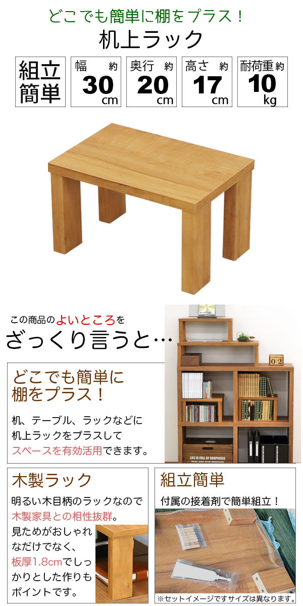 机上ラック 木製 デスク上置き棚 卓上ラック デスク上置き台 幅30cm 奥行20cm 高さ17.4cm モニター台 モニタースタンド パソコン台 PC台 キーボード収納 机上台 卓上台 デスク上台 デスク上置台 デスク上置棚 追加棚 ONU ルーター置台 木製台 木製ラック デスク収納 プリンター台 プリンターラック GU-SET11