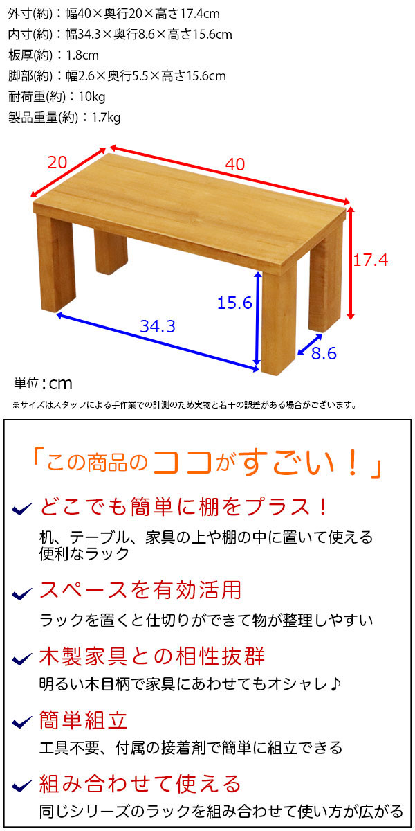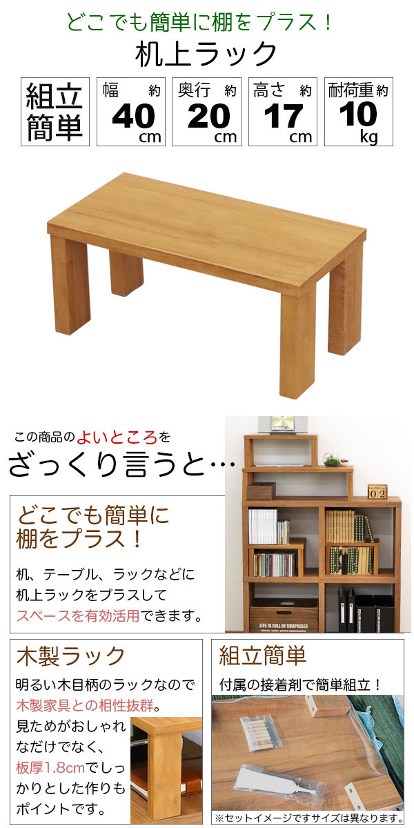 机上ラック 木製 デスク上置き棚 卓上ラック デスク上置き台 幅40cm 奥行20cm 高さ17.4cm モニター台 モニタースタンド パソコン台 PC台 キーボード収納 机上台 卓上台 デスク上台 デスク上置台 デスク上置棚 追加棚 ONU ルーター置台 木製台 木製ラック デスク収納 プリンター台 プリンターラック GU-SET12