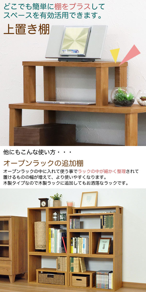 ・明るいナチュラル色の机上ラックは、上置き棚としてちょっとした場所に棚を増やしたい時に便利な追加棚です。