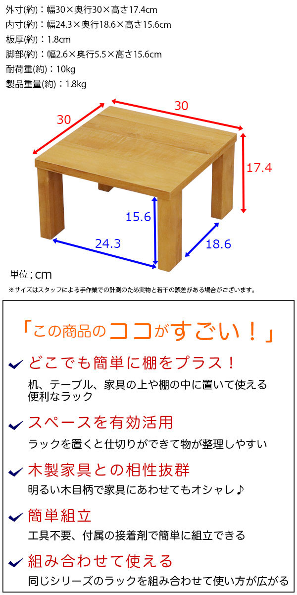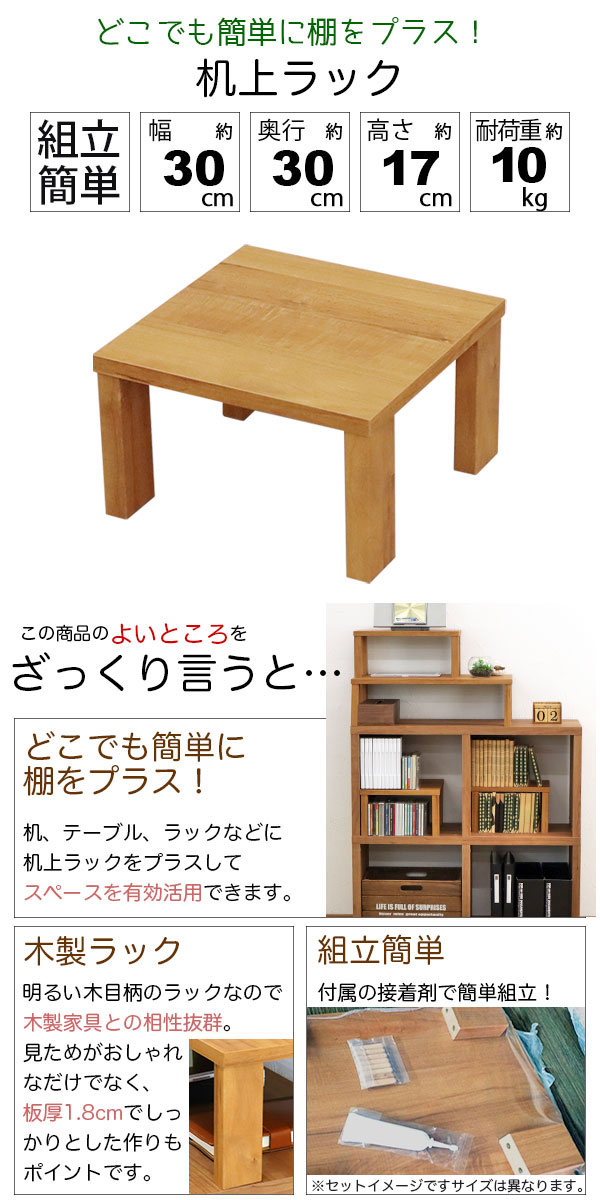 机上ラック 木製 デスク上置き棚 卓上ラック デスク上置き台 幅30cm 奥行30cm 高さ17.4cm モニター台 モニタースタンド パソコン台 PC台 キーボード収納 机上台 卓上台 デスク上台 デスク上置台 デスク上置棚 追加棚 ONU ルーター置台 木製台 木製ラック デスク収納 プリンター台 プリンターラック GU-SET14
