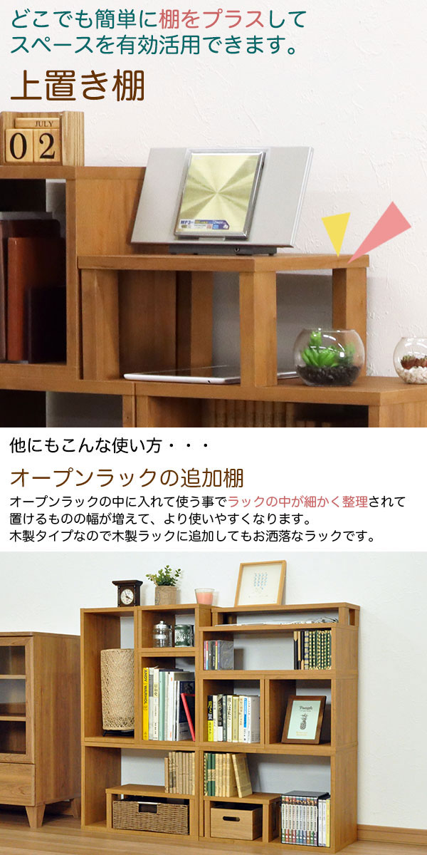 ・明るいナチュラル色の机上ラックは、上置き棚としてちょっとした場所に棚を増やしたい時に便利な追加棚です。