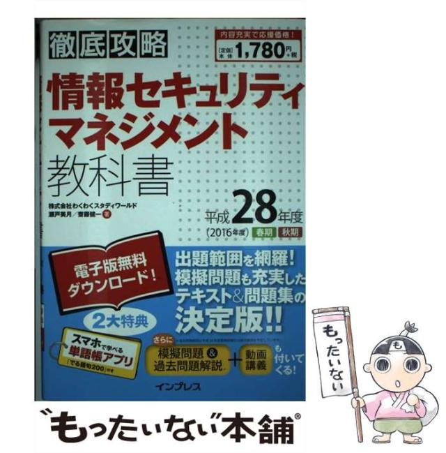 【中古】 情報セキュリティマネジメント教科書 平成28年度春期秋期 (徹底攻略) / 瀬戸美月 齋藤健一 / インプレス [単行本(ソフトカバー)]【メール便送料無料】