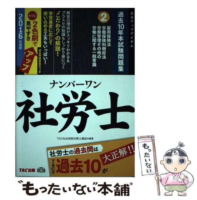 ● ナンバーワン社労士過去10年本試験問題集 2016年度版1 労働基準法・労働安全衛生法・労災保険法 (TAC社労士ナンバーワンシリーズ) / TAC株式会社(社会保険労務士講座) / TAC株式会社出版事業部 [単行本(ソフトカバー)]