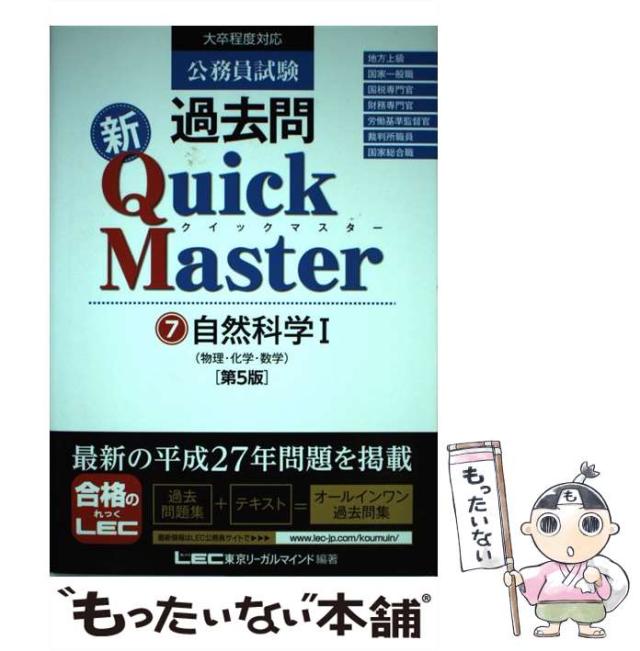 商品名:【中古】 公務員試験過去問新Quick Master 7 自然科学 1 物理・化学・数学 第5版 / 東京リーガルマインドLEC総合研究所公務員試験部 / 東京リーガルマインド [単行本]【メール便送料無料】