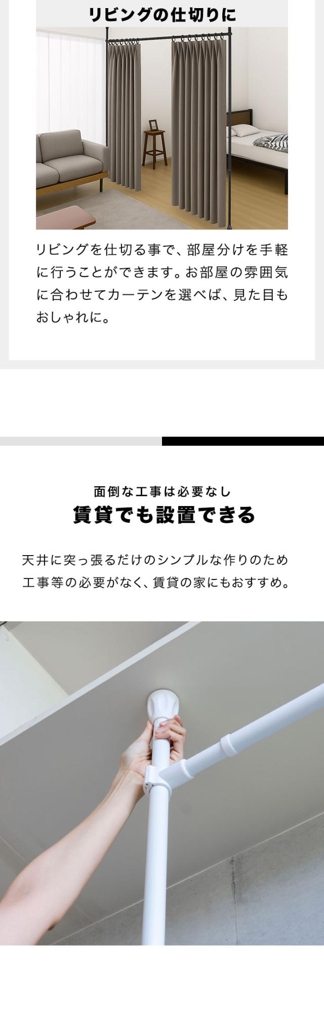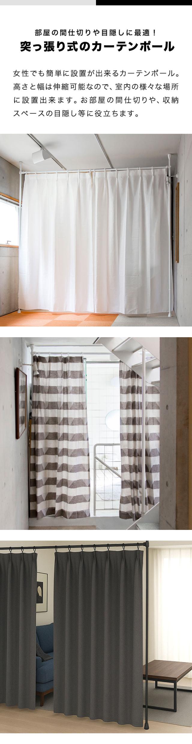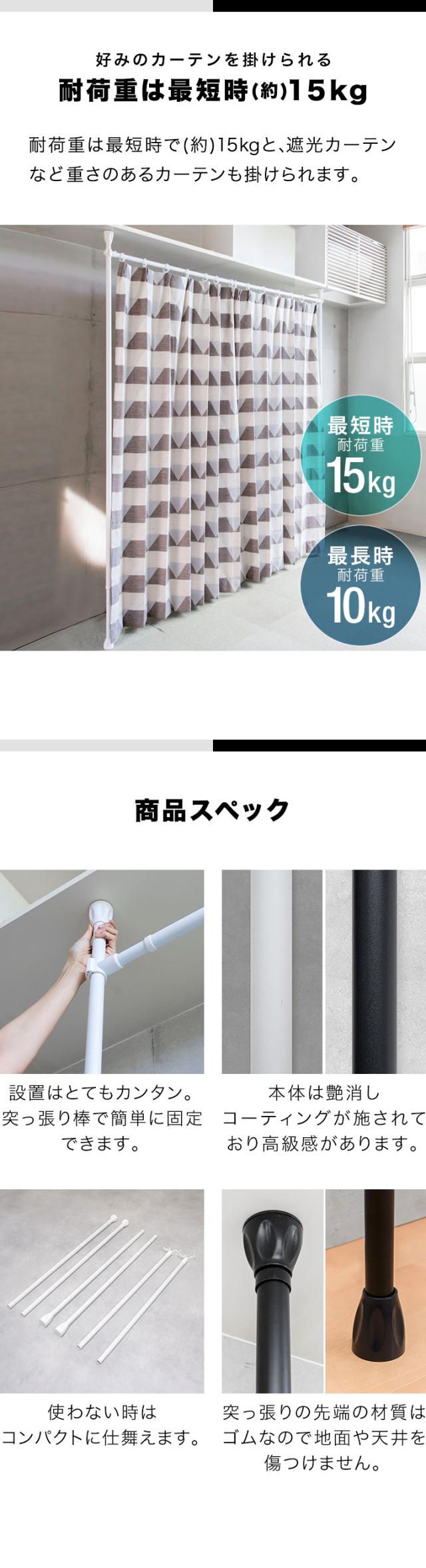 カーテン カーテンポール つっぱりカーテンポール 突っ張りカーテンポール カーテンレール 突っ張りカーテンレール 天井 穴あけ不要 突っ張り棒 突っ張り つっぱり 棒 ロッド 伸縮ポール 伸縮レール カーテン シングル 天井突っ張り式 天井つっぱり式 遮光カーテン ドレープカーテン レースカーテン のれん 暖簾 対応 パーテーション 仕切り 間仕切り 目隠し スクリーン 衝立 ルームディバイダー 個室 プライベートルーム 更衣室 試着室 着替え 賃貸 ワンルーム 1人暮らし 一人暮らし ホテルライク 室内 ガーデン バルコニー オフィス 会社 施設 ホテル ブライダル 店舗 カフェ 飲食店 DIY 模様替え 窓 障子 襖 工事不要 工具不要 簡単 取付簡単 手軽 女性 シンプル おしゃれ 艶消し マット ホワイト 白 ブラック 黒 インテリア・寝具・収納 カーテン・ブラインド カーテン・ブラインド用アクセサリー カーテンレール 家具、インテリア カーテン ブラインド カーテンレール ポール