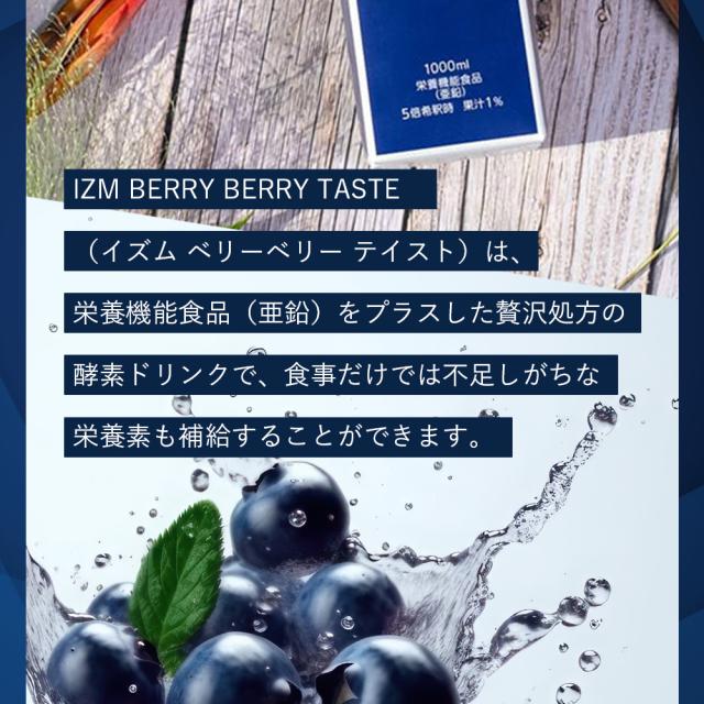 IZM 【 BERRY BERRY TASTE 】 1000ml 【 2本セット 】酵素ドリンク イズム ベリーベリーテイスト 栄養機能食品 ( 亜鉛 ) ブルーベリー味 植物発酵エキス、ブルーベリー コラーゲンペプチド プラセンタ ビタミン各種 亜鉛 腸活 ファスティング 腸内環境