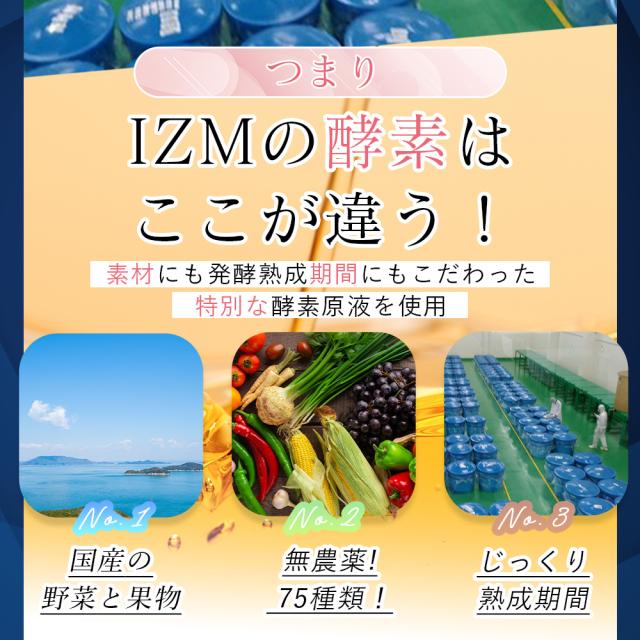 | 商品説明 | ◆クリアな生活、腸内環境や美をサポート 不足しがちな栄養素も補給できる、ワンランク上の酵素ドリンク IZM BERRY BERRY TASTE(イズム ベリーベリー テイスト)は、瀬戸内産の野菜や果物75種類を3年半発酵させた植物発酵エキス配合の、ブルーベリー味の酵素ドリンクです。 栄養機能食品(亜鉛)をプラスしたワンランク上の酵素ドリンクで、食事だけでは不足しがちな栄養素も補給することができます。 クリアな生活、日々の活力、腸内環境や美をサポートいたします。 ◆腸内環境や美をサポートします。 植物発酵エキス、ブルーベリー、コラーゲンペプチド、プラセンタ、ビタミン各種、亜鉛 ※亜鉛は、「味覚を正常に保つ」「皮膚や粘膜の健康維持を助ける」「たんぱく質・核酸の代謝に関与して、健康の維持に役立つ」栄養素です。 ◆手軽に続けやすい美味しさを追求 栄養機能食品酵素ドリンクでありながら、IZMのコンセプト「美味しいから続けられる」を継承。 酵素ドリンクってどんなイメージがありますか?一度飲みにくさを感じてしまうと毎日の習慣として続けるのは難しいものです。「美味しいから無理なく手軽に続けやすい。」「これなら子供も飲みやすい。」そんな仕上がりを追求し、IZMシリーズはつくられています。 ◆アルミパックECO仕様 飲み始めから飲み終わった後までを考慮したアルミパック仕様です。冷蔵庫での保管やゴミ捨てもラクに取り扱えます。 当店はメーカーより認定をされている数少ない正規販売店となります。 ご安心してお買い求めくださいませ。 |
