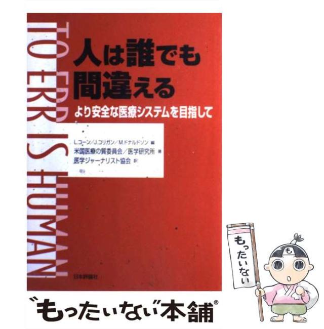 商品名:【中古】 人は誰でも間違える より安全な医療システムを目指して / L.コーン J.コリガン M.ドナルドソン、米国医療の質委員会 医学研究所 / 日本評論社 [単行本]【メール便送料無料】