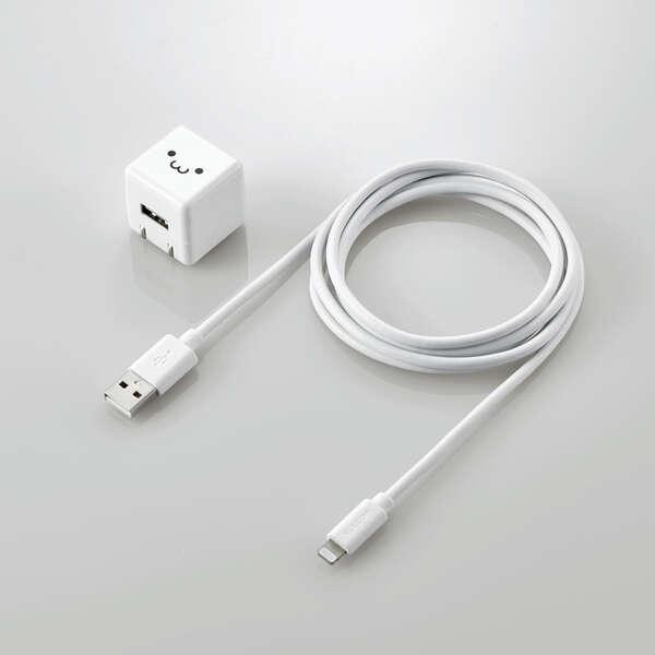 家庭用コンセントからLightningコネクタ搭載のiPhoneやiPad、iPodを充電できるLightningケーブルを付属したAC充電器です。 付属のLightningケーブルは、充電だけでなくパソコンとのデータ通信にも使用可能です。ケーブル長は1.5m、かわいい顔つきの“しろちゃん”モデルです。