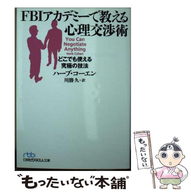 商品名:【中古】 FBIアカデミーで教える心理交渉術 どこでも使える究極の技法 (日経ビジネス人文庫 こ11-1) / ハーブ・コーエン、川勝久 / 日本経済新聞出版社 [文庫]【メール便送料無料】