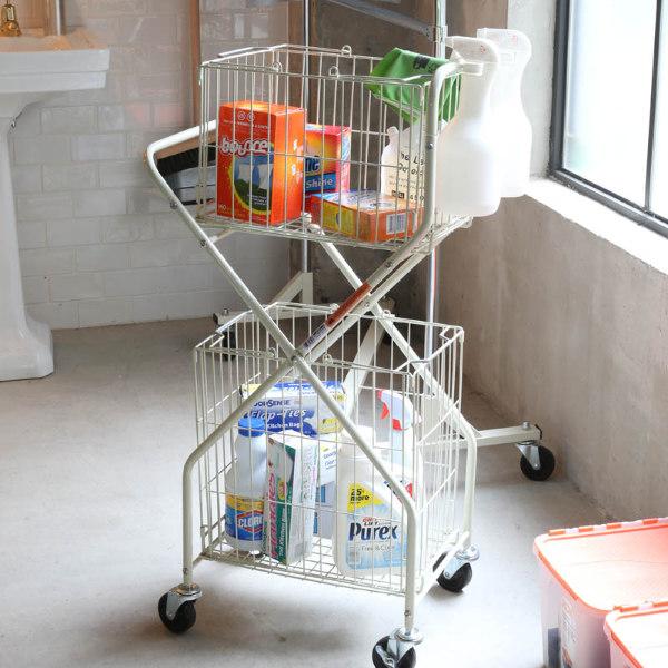 アメリカを中心に欧米のランドリー、オフィスでの書類移動時などに使われているトローリーです。洋服はもちろんのこと、バスタオルを収納したり、脱衣カゴとして洗面所周りにもお使いいただけます。調味料やストックなどを置いておく、キッチン周りでも大活躍すること間違いなし。その他、趣味のグッズ収納にも最適!使い方は、お好みに合わせて自由にカスタマイズできます。