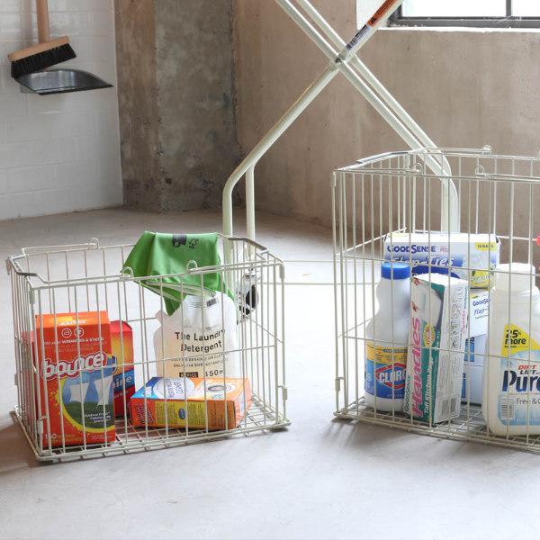 上下のカゴはそれぞれ取り外して、洗剤やストックなどを入れておく収納バスケットとしてもお使いいただけます。また、掃除グッズ等を入れておくと、掃除したい部屋まで運べて、使いたい時にサッと取り出せるので便利です。