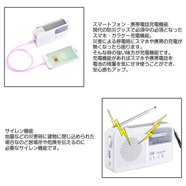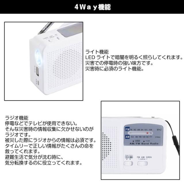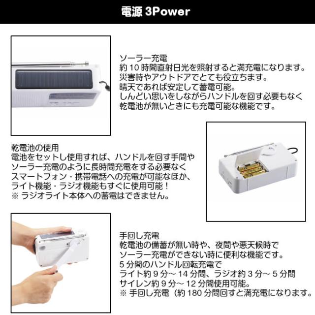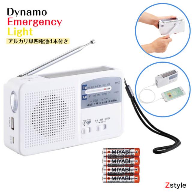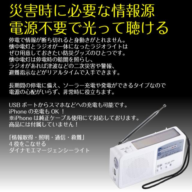 ダイナモエマージェンシーライト (3電源・4機能) ※ 電池付き 手動 スマホ充電器 防災グッズ 防災用品 非常用ライト 懐中電灯 非常用充電器 スマホ充電器 ラジオ 手動 充電 スマホ iphone対応 防災セット 非常持ち出しセット 防災ラジオ 手回し 充電器 防災リュック