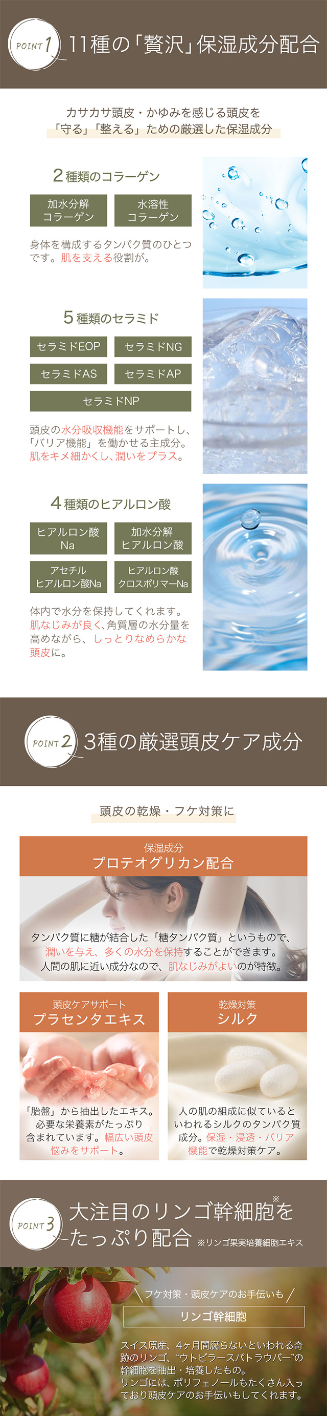 | 特徴 | 贅沢処方でフケ・乾燥・かゆみから解放!うるおい頭皮へ。 |