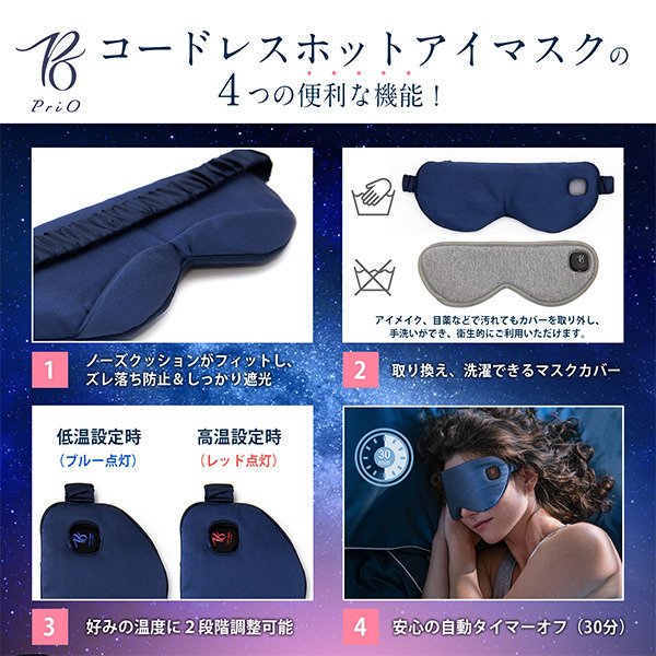 ボタンひとつでやさしく温まり安眠へ導くホットアイマスク。