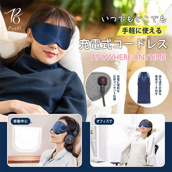 コードレス・usb 充電式、シルクカバーは洗濯可能なので繰り返し使える自然にも優しいアイマスクとして話題です!