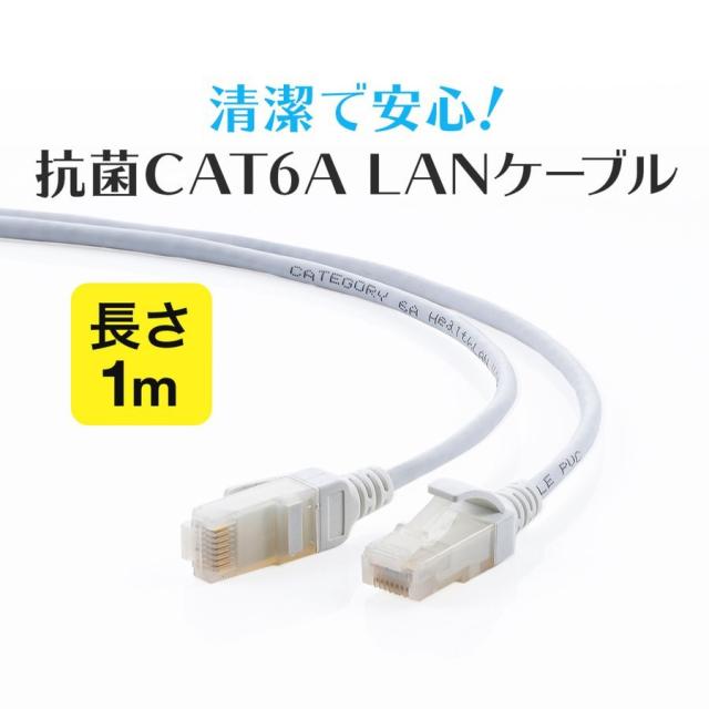 抗菌 LANケーブル Cat6A 1m スリム 細径3.6m より線 ツメ折れ防止 ホワイト[500-LAN6AKK-01]