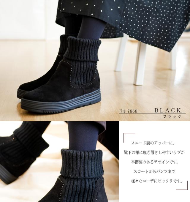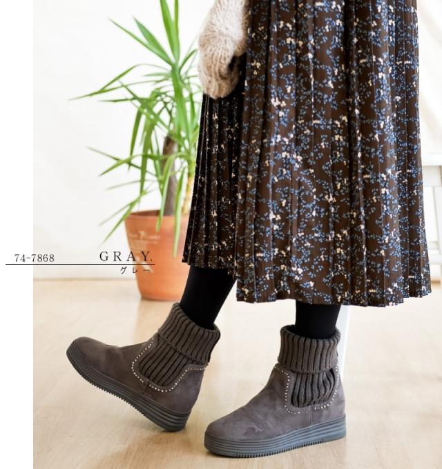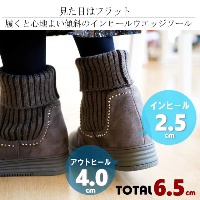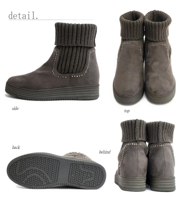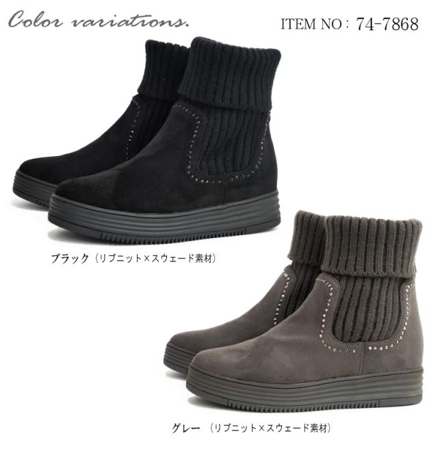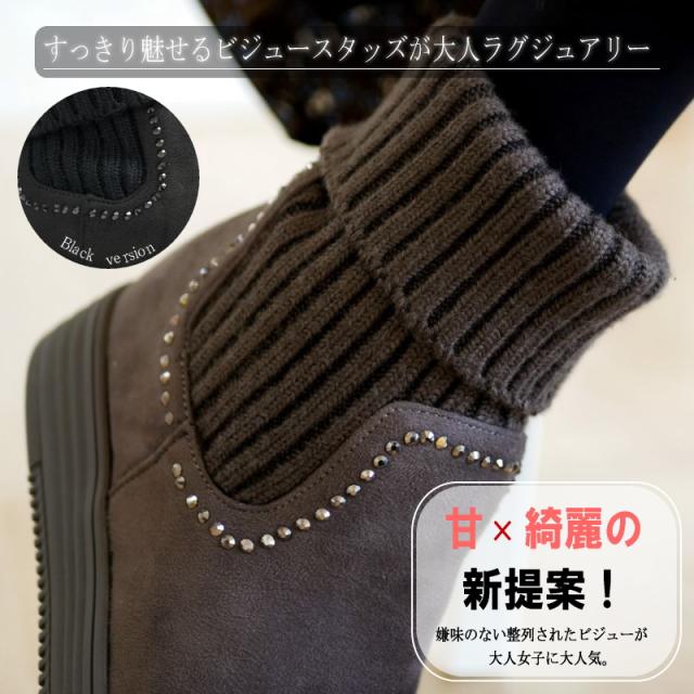 50%OFF MUUM ムーム ショートブーツ リブニット レディース 厚底 インヒール ビジュー スタッズ ウエッジソール 暖かい 伸縮性 ストレッチ 歩きやすい 履きやすい お洒落 旅行 脚長 3e