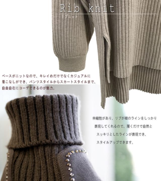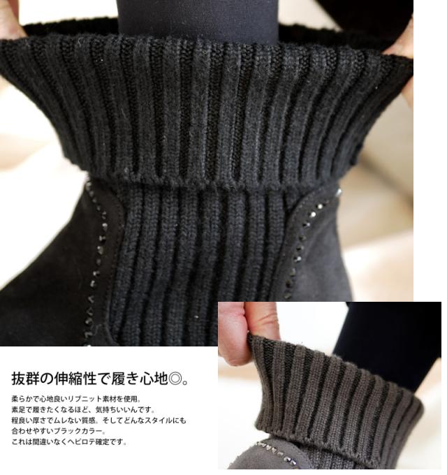 履き口のリブニットが脱ぎ履き楽々で脚にフィットするのであたたかい履き心地のニットブーツ