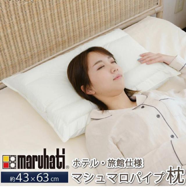 マシュマロパイプ枕 丸八真綿 ホテル仕様 63×43cm 上質羽毛 綿100% クリーム 無地 ストレートネック 安眠 快眠 シンプル 本格 まくら ピロー まくら 寝具 枕 パイプ Sleep Artist(代引不可)【送料無料】
