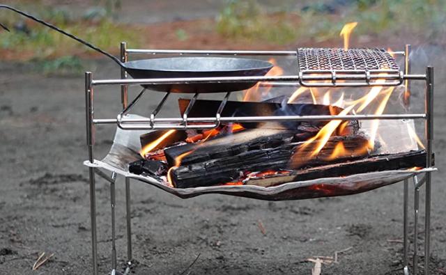 薪をのせるステンレスメッシュ。Max10kgの重りを載せられ、たくさん薪をのせても大丈夫!