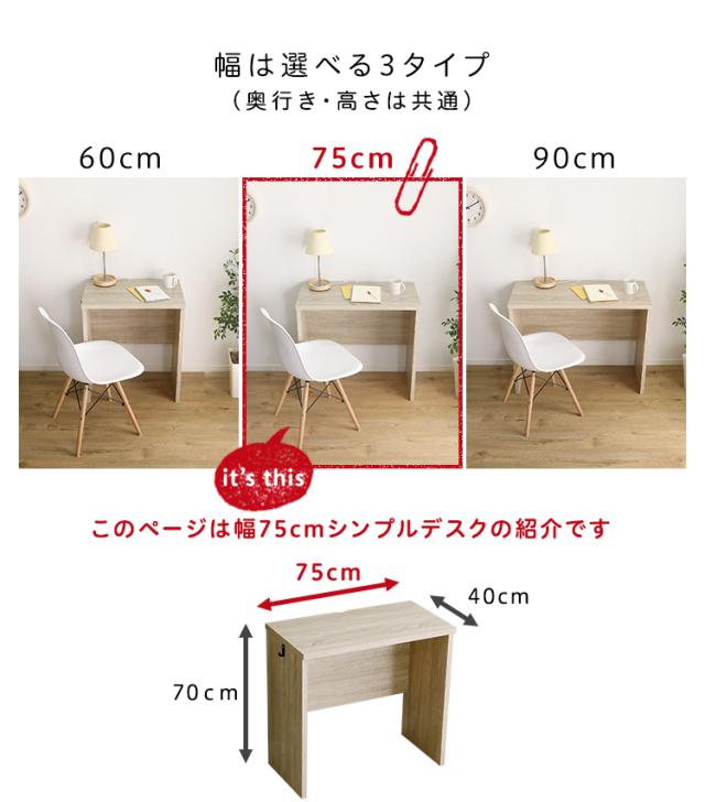 子どもから大人まで使えるリビングに合うシンプルデスク75cm幅!