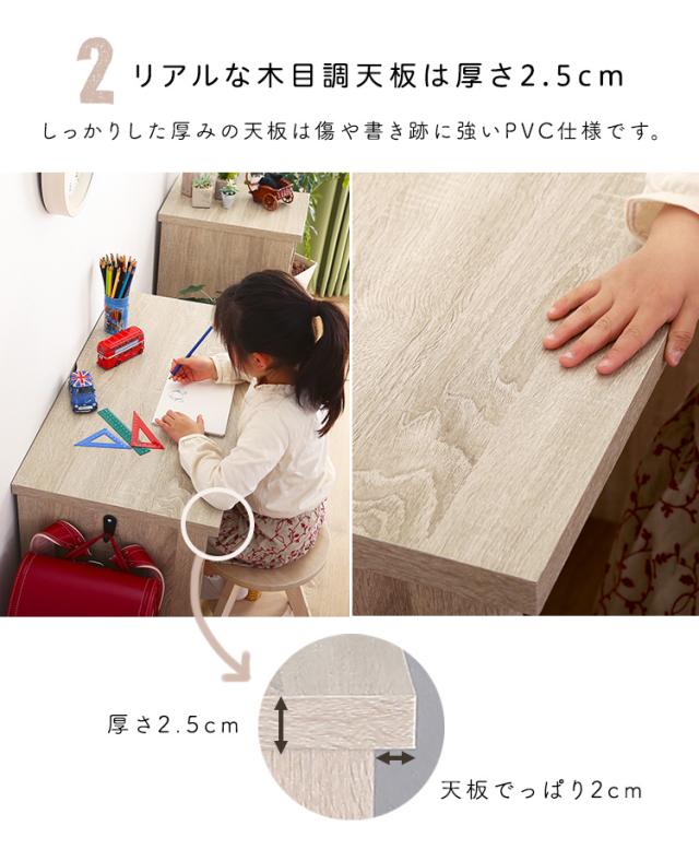 しっかりした厚みの天板はキズや書き跡に強いPVC仕様です。
