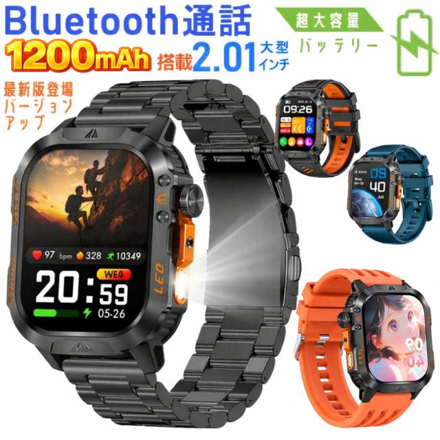 【2026最新・1200mAh大容量バッテリー 】スマートウォッチ 日本製センサー 通話機能付き 男女通用 2.01インチ大画面 心拍数 LINE着信通知 VER5.2 IP67防水 健康管理 血中酸素濃度 睡眠モニター 運動記録 レディース メンズ