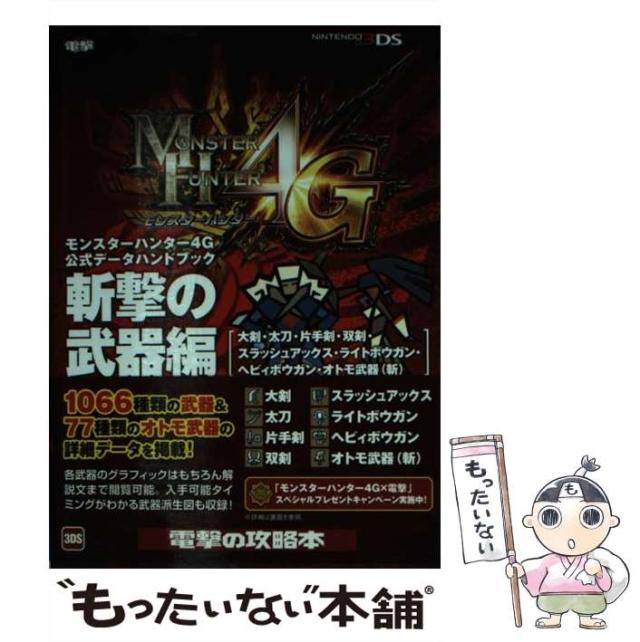 商品名:【中古】 モンスターハンター4G公式データハンドブック 斬撃の武器編 大剣・太刀・片手剣・双剣・スラッシュアックス・ライトボウガン・ヘビィボウガ / / [単行本]【メール便送料無料】