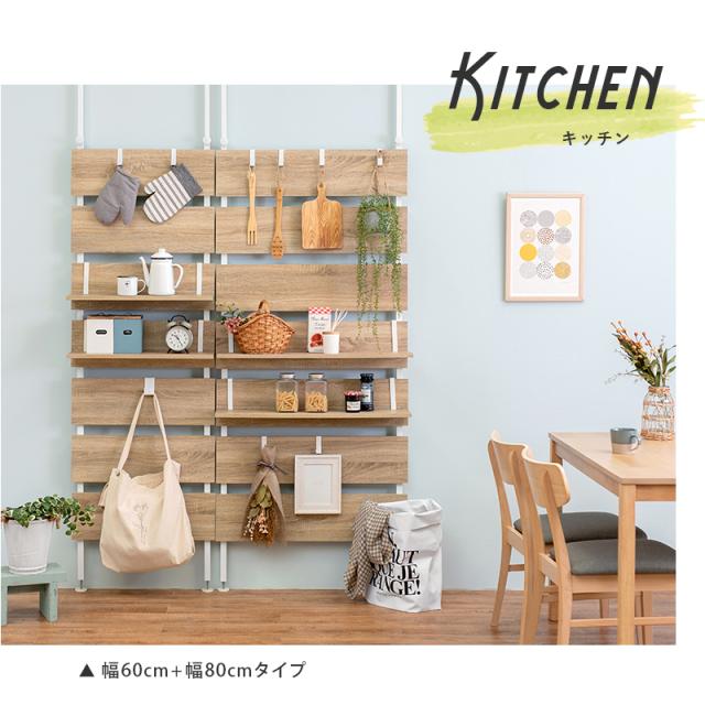 | お部屋のいろいろな場所に設置できる突っ張り式ラック。 パーテーションや間仕切りとしても活躍します。 幅60cmタイプ ■組立式 ■棚板2枚 ■フック7ケ付 | ||||||||