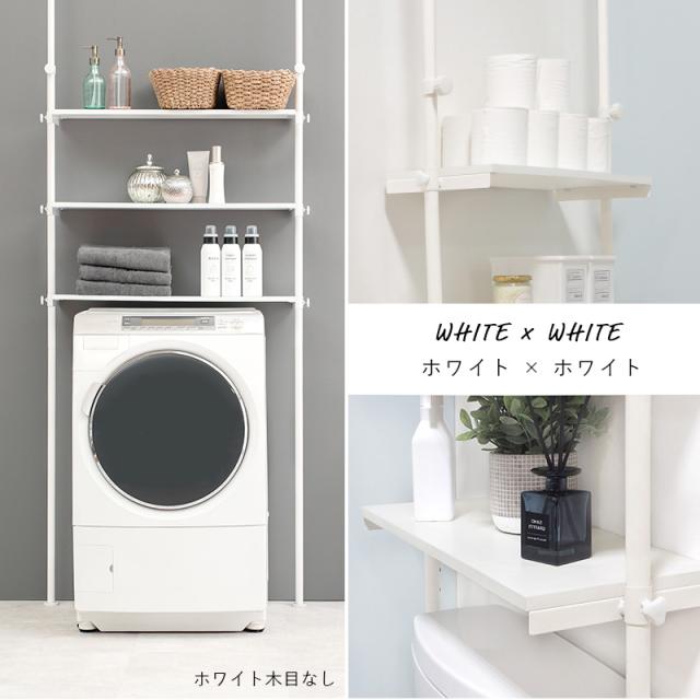 突っ張り洗濯機ラック 幅90cm 収納 洗濯機 ラック 洗濯機上 空間 有効活用 省スペース デッドスペース つっぱり式 シンプル デザイン KTR-3154SW